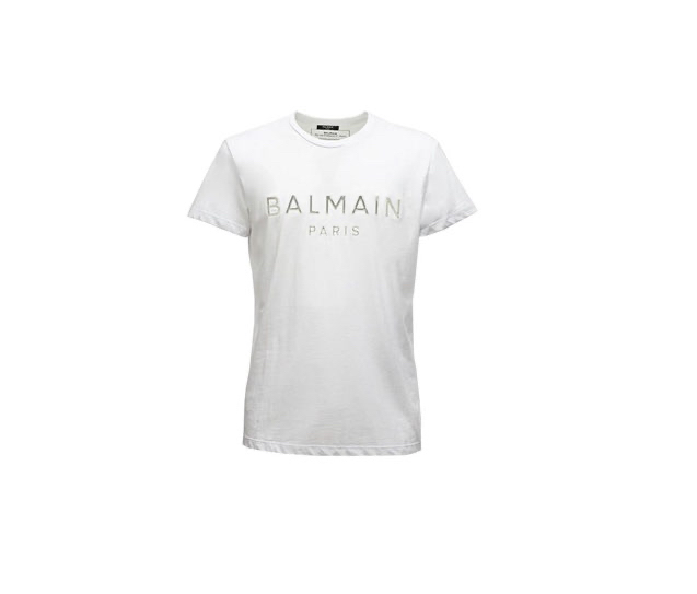 t-shirt bianca balmain con scritta bianca