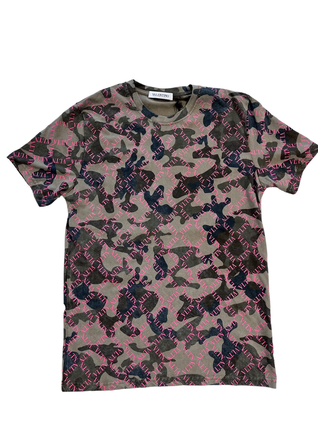 valentino t-shirt militare con logo rosa